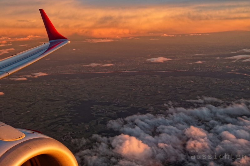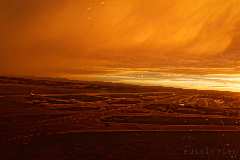 Regenschauer begleiten den abendlichen Abflug nach Oslo.