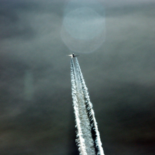 In der feuchten, aber stabilen Polarluft über dem sibirischen Tiefland bildet sich ein Kondensstreifen, der die von den Tragflächenenden ausgehenden Verwirbelungen erkennen lässt.