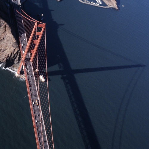 Im Nachmittagslicht werfen die Pfeiler des Tors zum amerikanischen Westen lange Schatten auf das Wasser der San Francisco Bay.