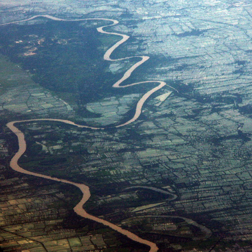Dicht an dicht und wie überflutet liegen die Reisfelder in der Nähe von Surabaya an der Nordküste Javas.