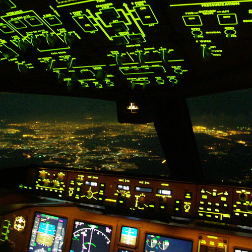 Nach elf Stunden Flug, der größte Teil davon in völliger Dunkelheit, verheißen die Lichter von Singapur eine baldige Landung, Schlaf und Ruhe.
