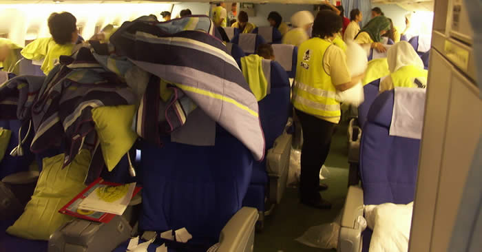 Und das sind dann unsere Flugbegleiter. Stolz und mit Geschick hat der Passagier die Handgepäckbeschränkungen sowohl bei Gewicht als auch bei der Größe umgangen, und jetzt muss die Kabinenbesatzung sehen, wie sie alles verstaut bekommt. Wehe, das Großgepäck wird nicht in unmittelbarer Nähe des Besitzers untergebracht. Wutanfälle können die Folge sein. Kein Gedanke daran, dass die Beschränkungen ein schnelles Aussteigen Notfall ermöglichen sollen und schwere Verletzungen verhindern, wenn sich bei stärkeren Turbulenzen eines der Gepäckfächer öffnet und der Inhalt jemandem auf den Kopf fällt. Abgesehen von Beschwerden lässt sich die eigene Unabhängigkeit am besten durch die Nichtbeachtung möglichst vieler Regeln an Bord demonstrieren. Ein Held, wer unbemerkt während des Rollens und kurz nach dem Start noch eine SMS verschicken kann. Was man nicht versteht, befolgt man nicht. Und – es ist doch nicht wirklich gefährlich, das eingeschaltete Handy, oder? Empfangsbereite Mobiltelefone können elektronische Systeme beeinflussen und stören, unter anderem auch den Funk. Die Chance, dass es dadurch zu nennenswerten Vorfällen kommt, ist klein. Vielleicht eins zu einer Milliarde. Das kann doch kein Problem sein, oder? Doch, kann es. Denn im Jahr 2010 flogen weit über zwei Milliarden Passagiere, von denen zweifellos die meisten ein Mobiltelefon besitzen. Das würde bei eingeschalteten Telefonen dann einen handybedingten Vorfall häufiger als alle sechs Monate bedeuten. Und das nur dafür, dass es im Reiseflug ohnehin keine verwendbare Verbindung gibt und das Handy nutz- und endlos ein Netz sucht. „Mein“ altes Kurzstreckenflugzeug reagierte übrigens auf hinten in der Kabine eingeschaltete Telefone gelegentlich nervös: nämlich mit einer Rauchwarnung für den Laderaum, was, da man nicht nachschauen kann, den Einsatz von Löschmittel und eine Landung auf dem nächstgelegenen Flugplatz erfordert. Dennoch Unverständnis, wenn ein Flugbegleiter nach dem erfolgreichen Verstauen des übergroßen Handgepäcks während des Rollens das Ausschalten des Mobiltelefons fordert. Unhöflichkeiten und Gröberes sind an der Tagesordnung. Leider sehen viele Passagiere in der Kabinenbesatzung nur schlechteres Servierpersonal, an das selbst Worte wie Danke und Bitte verschwendet wären. Schließlich bezahlt man ihnen ja auch nichts, oder?