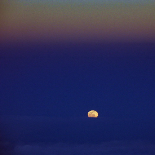 Während sich die Sonne im Westen verabschiedet, erscheint am Osthimmel, knapp unterhalb der Linie des Erdschattens, der voll erleuchtete Mond.
