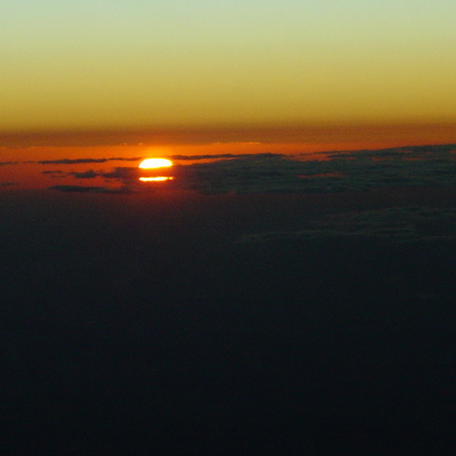 Die harmlosen Ausläufer eines Tropensturms, in weitem Bogen umflogen, schieben sich vor die sinkende Sonne.