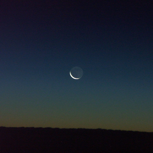 Asserbaidschan Das, was da in der Morgendämmerung die eigentlich dunkle Seite des Mondes schwach erkennbar macht, ist der Widerschein der Erde: Denn vom Mond aus gesehen ist diese gerade voll erleuchtet und strahlend hell zu sehen. |