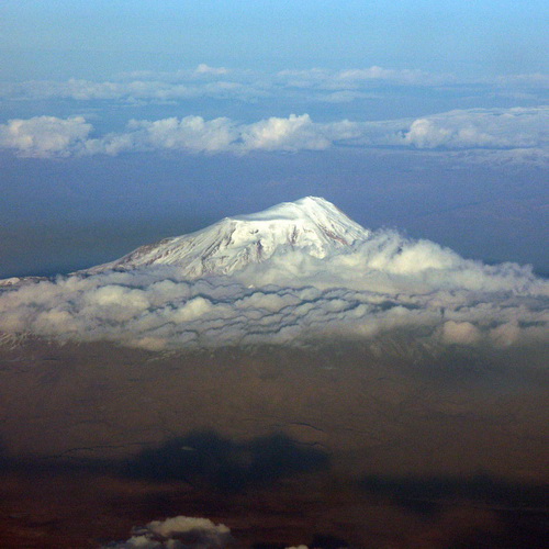 Anatolien, Türkei Hier soll sie angeblich nach der Sintflut vor Anker gegangen sein, Noahs Arche: Am Berg Ararat nahe der Grenze zwischen der Türkei und Yerevan. Mehr als 5000 Meter ist er hoch, und seinen Vulkankrater füllt Gletschereis. |
