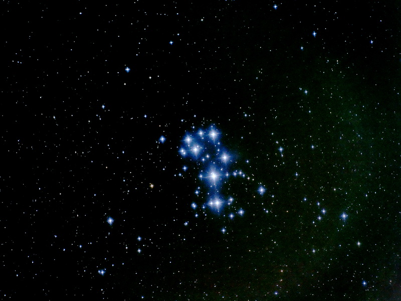 In ancient times they were known as the Seven Sisters of the Pleijades, and that is how many stars a good eye can see on a clear night, grouped together tightly within the constellation of Taurus. Most people have seen them at some time or the other, consciously or not.